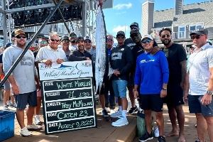 目前乔丹和他的团队钓到了一条重达71磅(32公斤)的白马林鱼,目前位居第二。